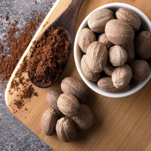 Nutmeg, or Jayfal, is a sweet, aromatic spice used in baking, desserts, and savory dishes for flavor.