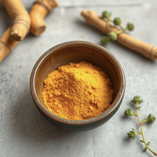 Turmeric Powder, derived from dried turmeric roots, is a bright yellow spice with anti-inflammatory and antioxidant benefits.