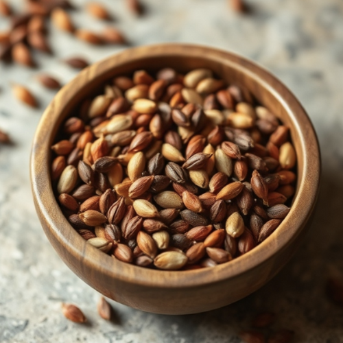 Flax seeds, or Alsi, are rich in omega-3 fatty acids and fiber, used in health-conscious recipes.